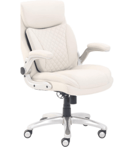 This office chair is super comfortable for the price and the best point is it keeps you sit straight rather than slouching position. I can easily flip up the arms when not in use.Some people who do not like this chair are the one who do not like forced or aggressive lumbar support.
