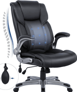 This chair is a great blend of style, comfort and support, making it ideal for long workdays. the chair feels sturdy and well-built once put together. The material looks nice and feels durable – no scratches or cracks. I especially like the inflatable lumbar support, you can adjust it to your preference and it really helps reduce back fatigue after a long day. Armrest are high even for a person who is 6 ft tall however the flip-up arms are very convenient when you need to slide the chair under the desk and save space. The seat cushion is generously padded without feeling too soft. It is easy to assemble this chair, one with no experience can assemble this in half an hour.The wheels move smoothly on the ground.